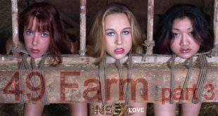 The farmer in black strikes again and continues with his mission to transform spoiled city girls into wet, wanton bondage sluts. Stolen from their comfortable homes, 49, 412, and 731 are first introduced to PD’s barn. While 49 stands with arms held in strappado, 412 wallows in the moldy hay …