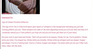 Hyp n0 Domme Priestess Katherine This hyp n0 t!c file is filled with layers upon layers of whispers in the background reminding you just how fucking pathetic you are. These whispers are some of the most degrading words you will ever hear and they will constantly remind you of how …