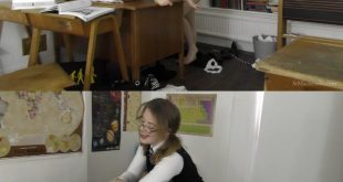Dolli has been left alone in her detention, she is wearing her slutty uniform with over the knee socks that have been pushed down. She is not interested in doing the work set for her so she swings her legs backwards and forwards looking bored before reaching down and pulling …