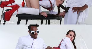 College girl Tiffany Doll has her knickers cut off then gets her pussy and ass inspected by infamous Omar with sex toys galore! Tiffany soon rides his monster black cock hard and deep in her ass. What a grade A medical student she is!